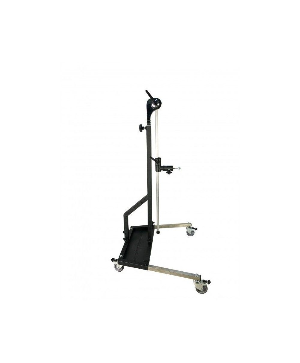 Standul telescopic „Soffit”, model S T * -2, este proiectat pentru fixarea si mutarea lampii. Standul este confectionat din teava cu profil de inalta rezistenta 30 * 30 * 1,2 mm. vopsit cu vopsea pulbere si o teava profilata din otel inoxidabil 25 * 25 * 1,2 mm. Bratul inclinat este realizat dintr-un tub de aluminiu d = 19 mm, care este atasat la stalpul principal folosind o unitate de prindere pivotanta din otel inoxidabil. Structura suportului principal este atasata la o baza trapezoidala, care are o tava pentru instalarea unei baterii, picioare reglabile reglabile si patru roti de sprijin cu diametru d = 75 mm, prevazute cu frana.