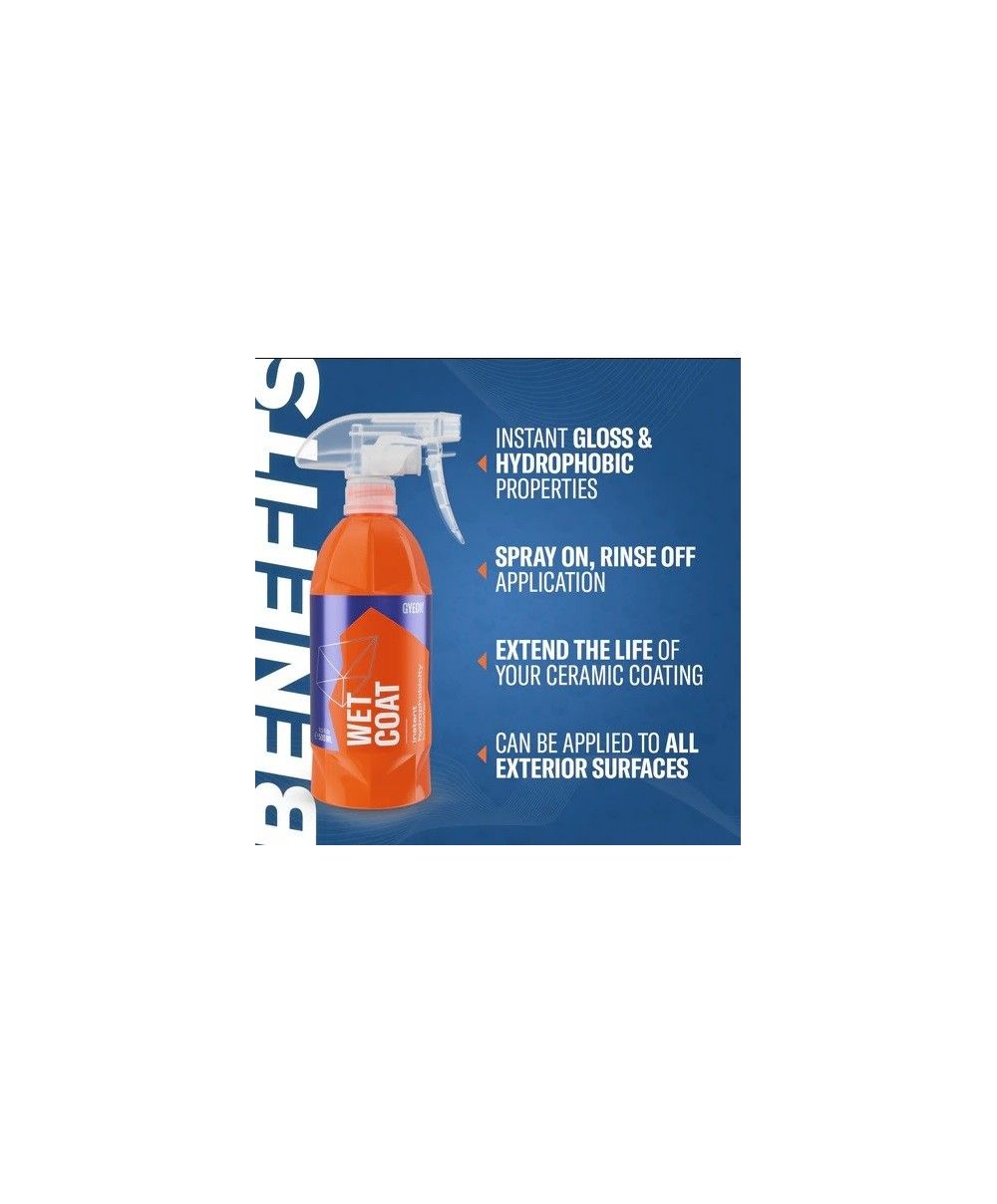 Q²M WetCoat este un amplificator de hidrofobie instantaneu, extraordinar de usor de utilizat. Este gata de utilizare, formula, oferind rezultate remarcabile intr-un proces simplu si rapid de pulverizare/clatire. In ciuda usurintei sale de utilizare, Q²M WetCoat ofera o durabilitate mare si rezistenta chimica.